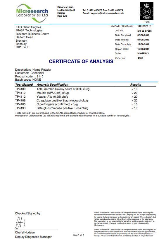 Decarboxylated Cannabis Sativa L., Eucalyptol, β-Caryophyllene, Citral, L-Linalool, Myrcene, Nerolidol, Linalyl Acetate, α-Pinene, β-Pinene, Camphene, D-Limonene, ρ-Cymene, Terpinolene, Ocimene, Borneol, L-Menthone, Zinc Oxide.