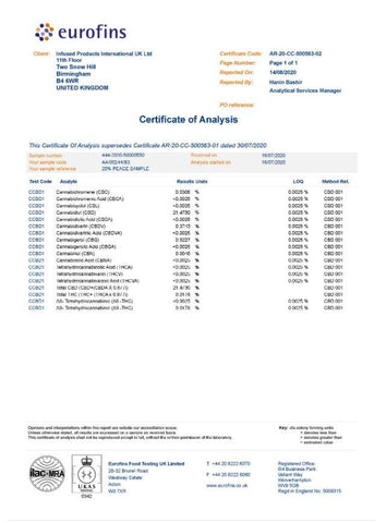 - 20% CBD distillate sourced from 100% organically grown hemp
