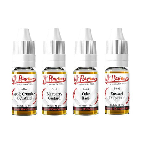 10 x 10ml UK Flavour Puddings Range Concentrate 0mg (Mix Ratio 15-20%)